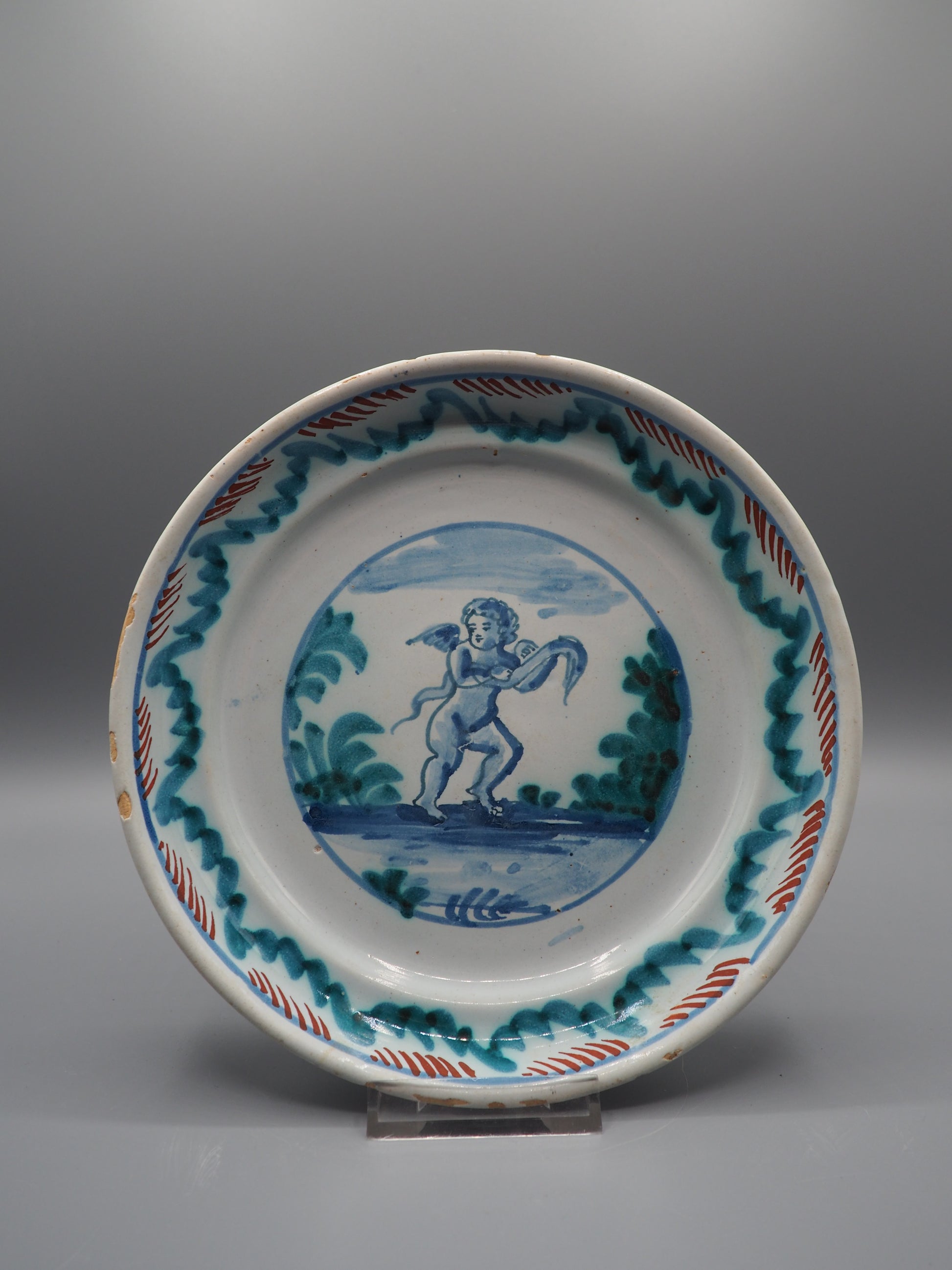 18th Century French Faience Dish with Putto – Hand-Painted – 20.5 cm